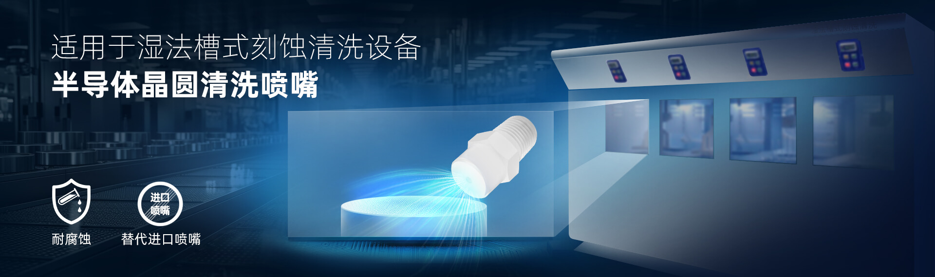 產(chǎn)品:實心錐噴嘴 應(yīng)用: 噴嘴安裝于槽式濕法刻蝕設(shè)備里,通過配合不同化學(xué)藥液,有效去除晶圓表面顆粒、有機物和金屬離子,應(yīng)用于晶圓制造、MEMS制造,以及功率器件制造領(lǐng)域。 工業(yè)噴嘴專業(yè)制造商🔥 品質(zhì)可靠·規(guī)格齊...
